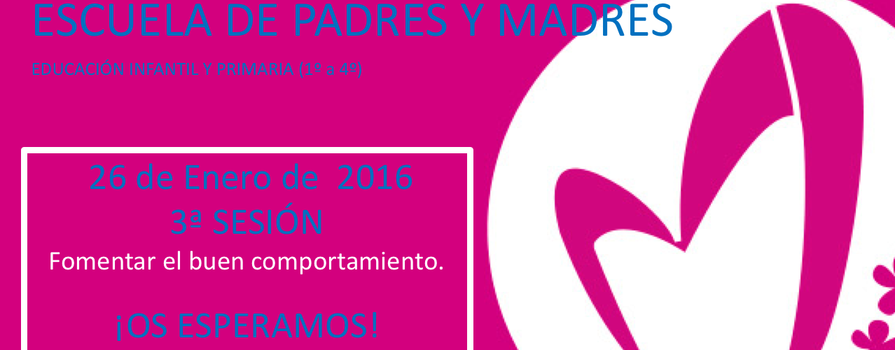 Os presentamos otra sesión de nuestra escuela de padres titulada “Fomentar el buen comportamiento”. En ella el equipo de orientación nos darán pautas para inculcar a nuestros chicos el comportamiento adecuado y sus beneficios en todos los ámbitos de su vida. Esta sesión se desarrollará el martes 26 de Enero de 15:45 a 16:45. Recordar que está orientado para las familias que tengan a sus hijos en infantil o primaria hasta 4º de esta etapa. Aunque estáis TODOS invitados. (más…)