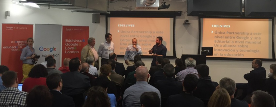 El Grupo Edelvives se ha convertido en la primera empresa editorial que colabora con Google for Education a nivel mundial para acompañar a los centros educativos en la aplicación de nuevas herramientas tecnológicas. El director general del Grupo Edelvives, Javier Cendoya, y el responsable del sur de Europa y de los países germano parlantes de Google for Education, Marc San López, sellaron la alianza en la sede del gigante tecnológico en Londres ante representantes de más de sesenta instituciones educativas españolas.