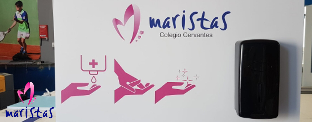 - Dispensadores, tanto de pared para cada clase como para mesa (los que se han utilizado estos días en el Hall y en la recogida y entrega de libros y material). También de tamaño pequeño individual para el personal de administración y secretaría.