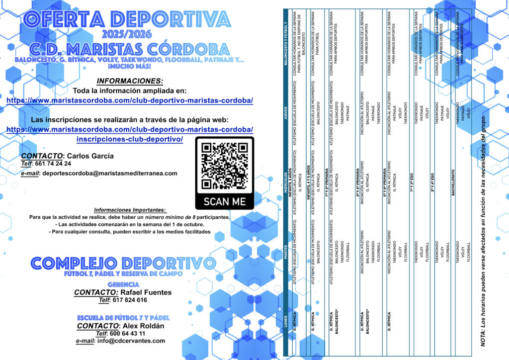Desde el Club Deportivo Maristas Córdoba, se nos presenta la oferta deportiva para el presente Curso Escolar 2025/2026. ¿A qué esperas para unirte?